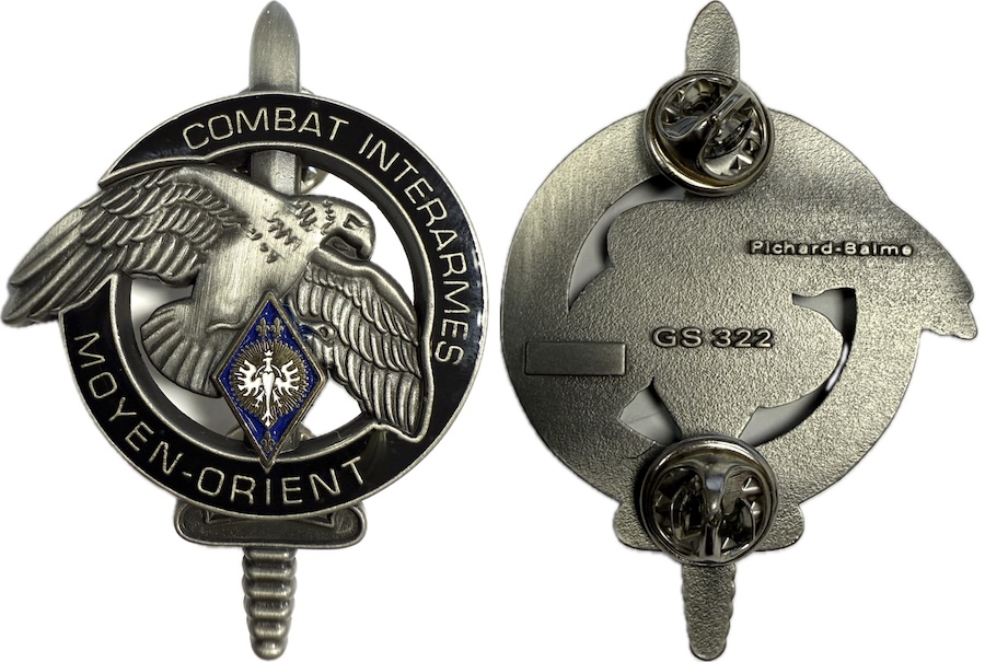 | 1° Demi Brigade S.A.S, sans chiffre, émail, dos lisse, 1 boléro gravé | ||||