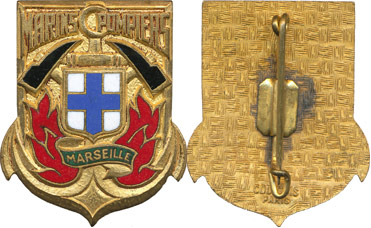 | MARSEILLE, Marins Pompiers, monobloc, émail, dos guilloché | ||||