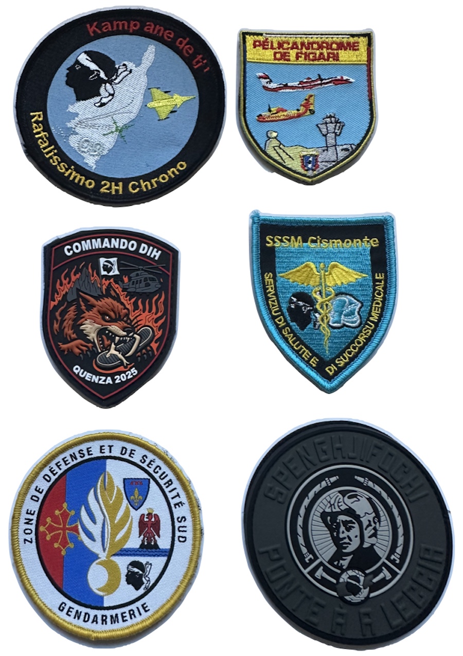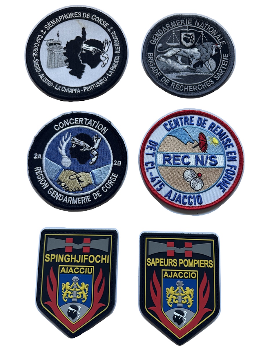 | Lot de 6 Tissus BRI et Police Nationale Corse divers | ||||