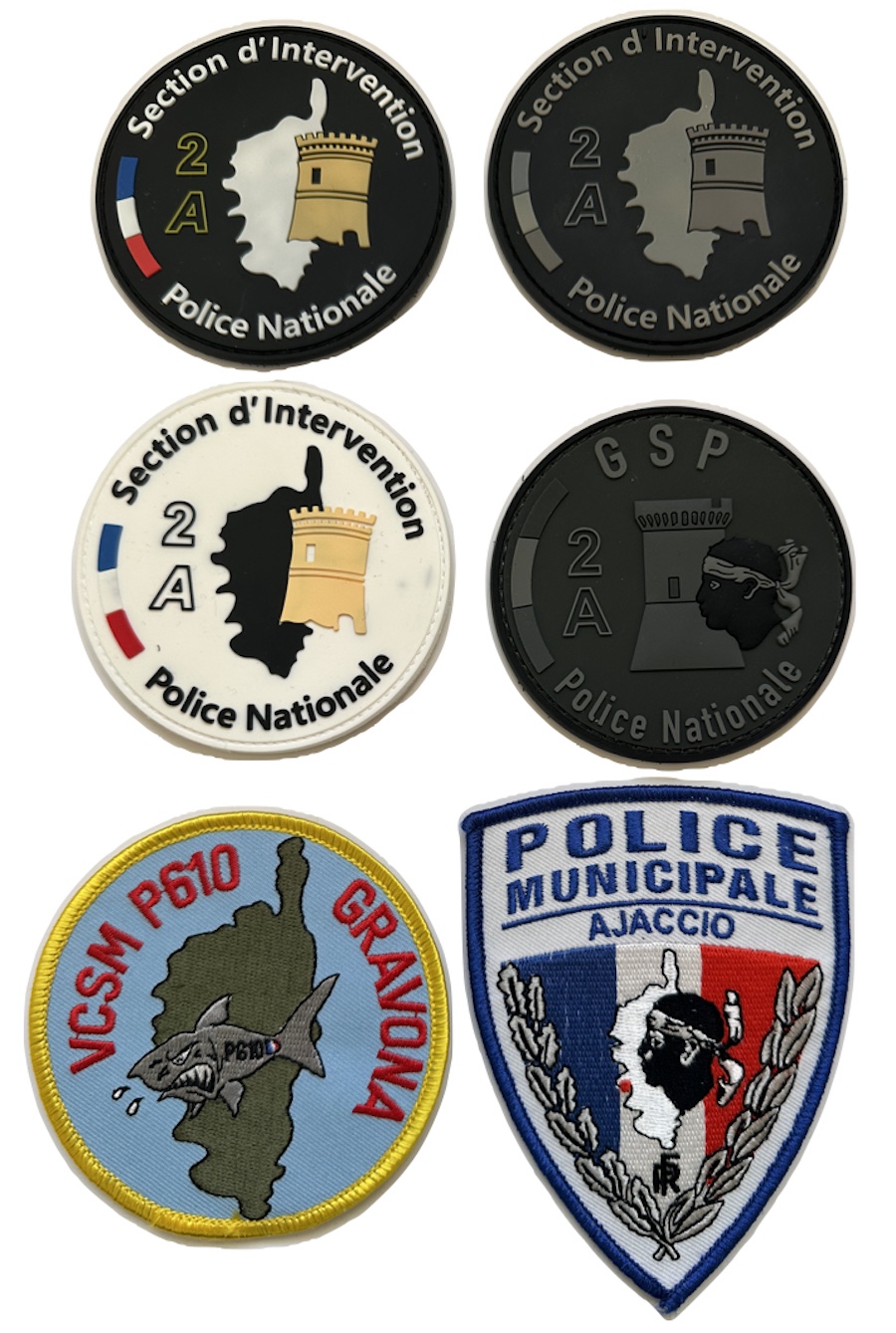 | Lot de 6 Tissus BRI et Police Nationale Corse divers | ||||