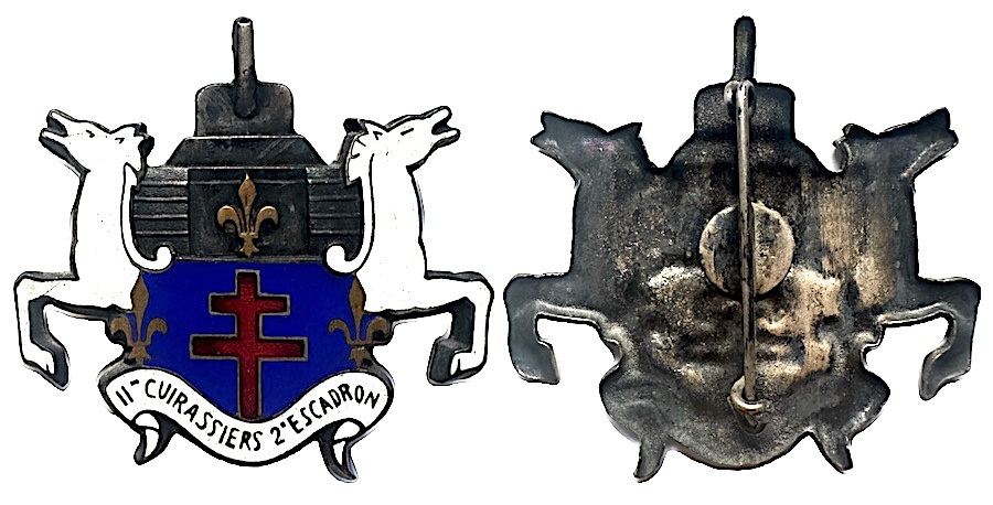 | 11° Régiment de Cuirassiers, 2° Escadron, émail, dos lisse embouti | ||||