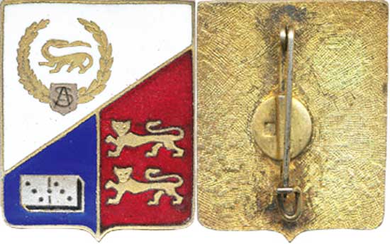 | char sommant une croix de Lorraine rouge sur fond bleu, le tout soutenu par 2 chevaux blancs, créé à la fin de la guerre 39 - 45, s’est illustré dans les Vosges à Giromagny et soutien les blindés de la 1ère D.F.L. | ||||