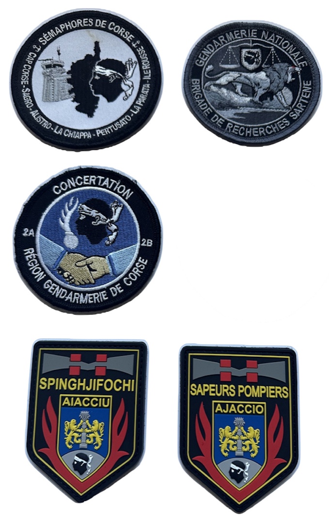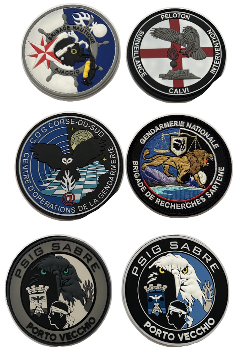 | Lot de 6 Tissus BRI et Police Nationale Corse divers | ||||