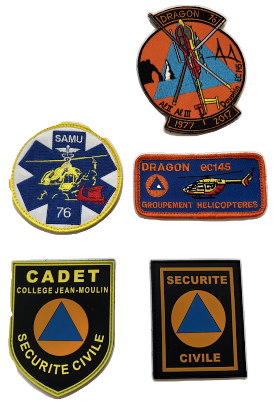 | Sécurité Civile, Groupement Aérien, triangle orange, fond noir | ||||