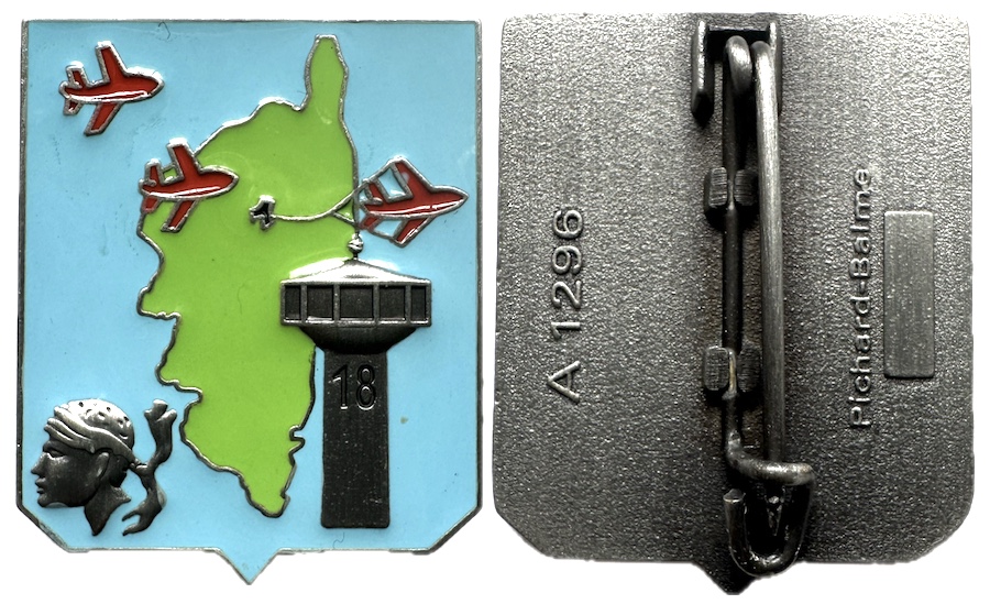 | écu bleu Corse verte 3 avions rouges tour de contrôle et tête de corse argentées | ||||