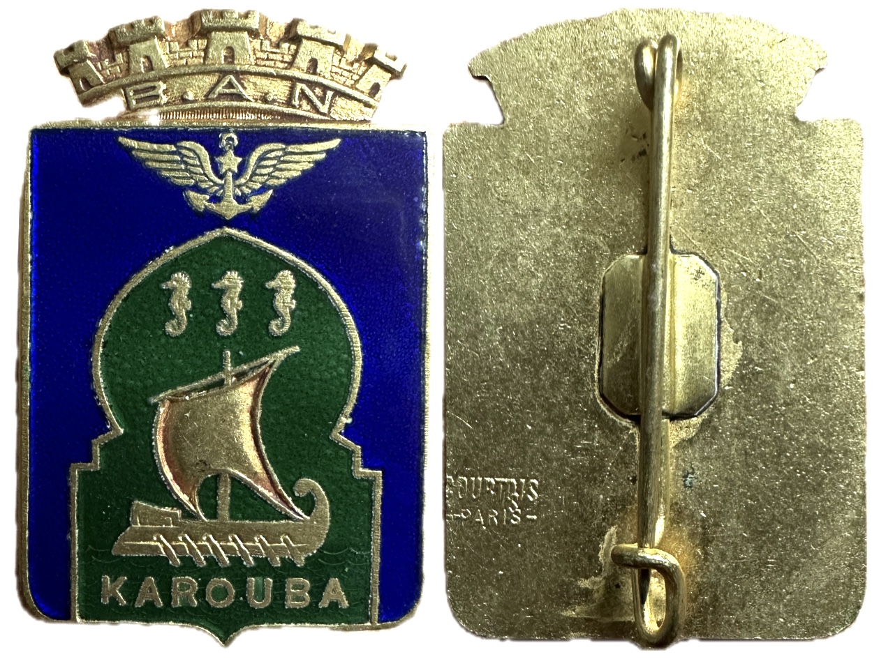| B.A.N. KAROUBA, émail foncé, dos lisse, Courtois a gauche | ||||