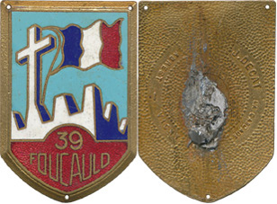 | C.J.F. 39, FOUCAULD, émail, sans épingle, 3 trous de couture | ||||