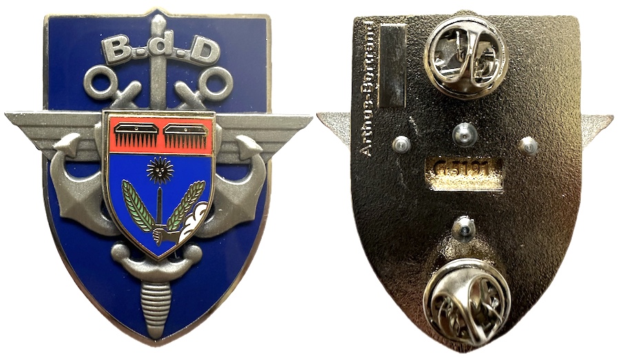 | Batterie de Commandement et de Logistique. ATTENTION... pouvant disposer de plusieurs exemplaires de cet insigne, le numéro vu sur la photo ne sera peut être pas celui que vous allez recevoir | ||||