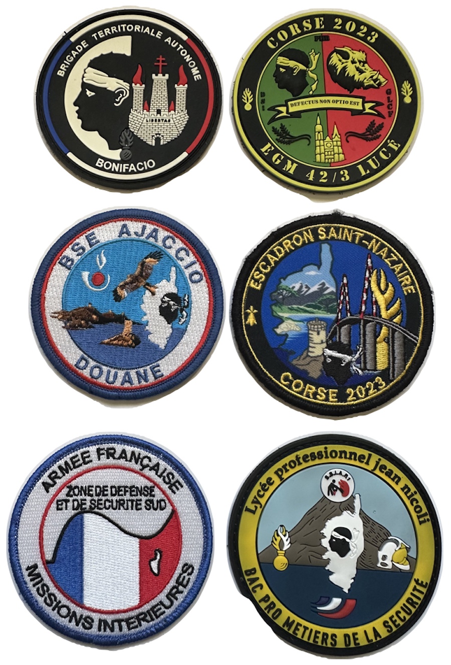 | Lot de 6 Tissus BRI et Police Nationale Corse divers | ||||