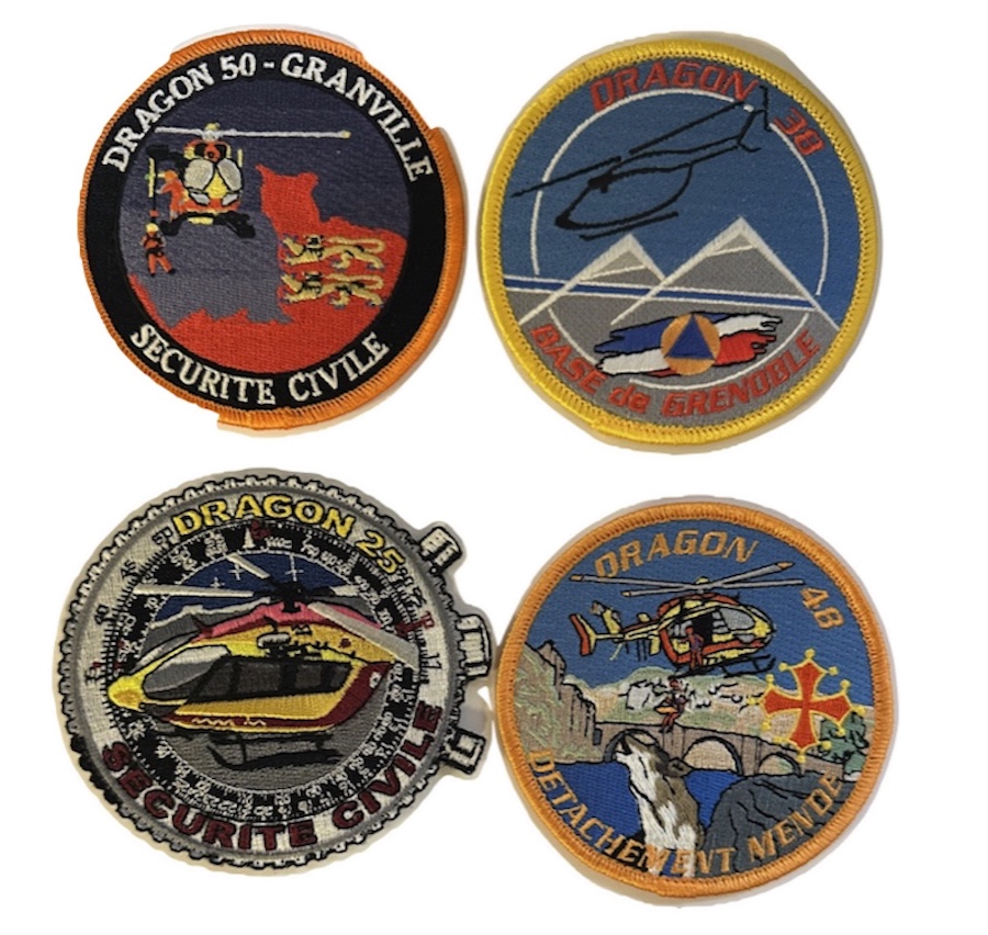 | rondache rouge fond bleu tête d’asiatique brochant sur un avion argenté chiffre 3 rouge sigle 23° GAOA | ||||