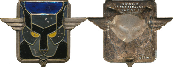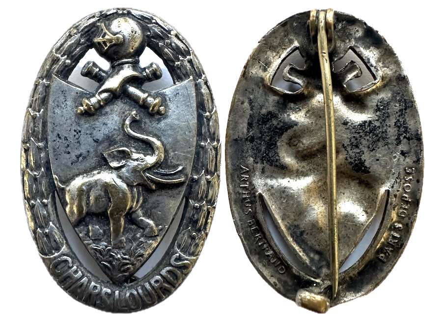 | ovale couronne de lauriers heaume canons croisés sur écu à l’éléphant chargeant, modèle A.B.P.D. réalisé en juin 1939 | ||||