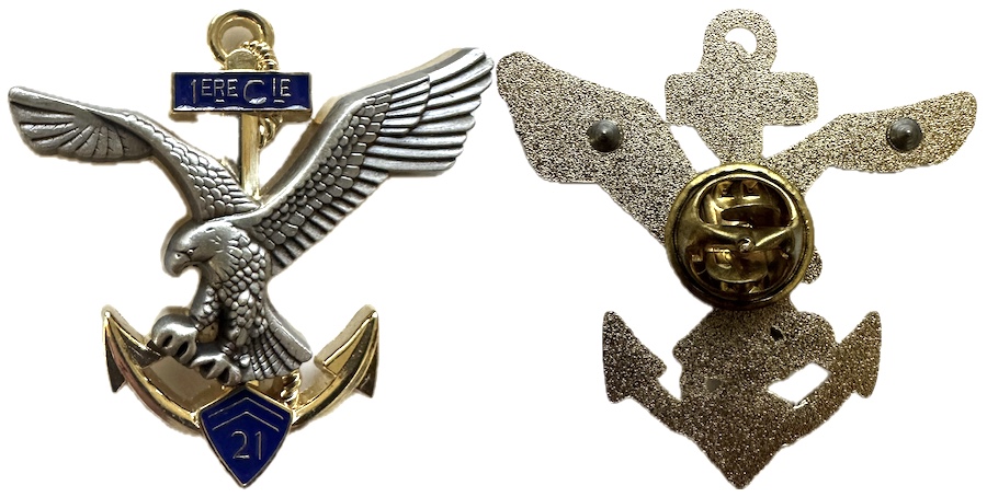 | 21° Régiment d’Infanterie de Marine, 1° Cie, type 2, aigle, attache pin’s | ||||