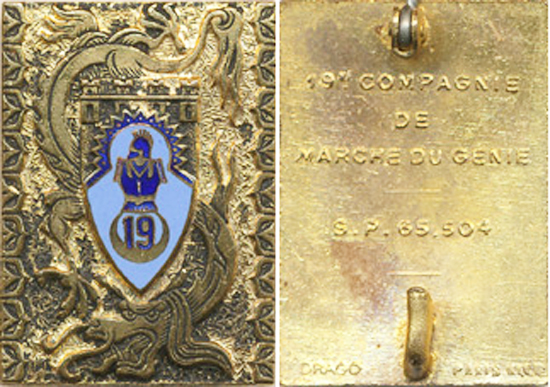 | 19° Cie de Marche du Génie en E.O, marqué au dos, lisse, matriculé | ||||