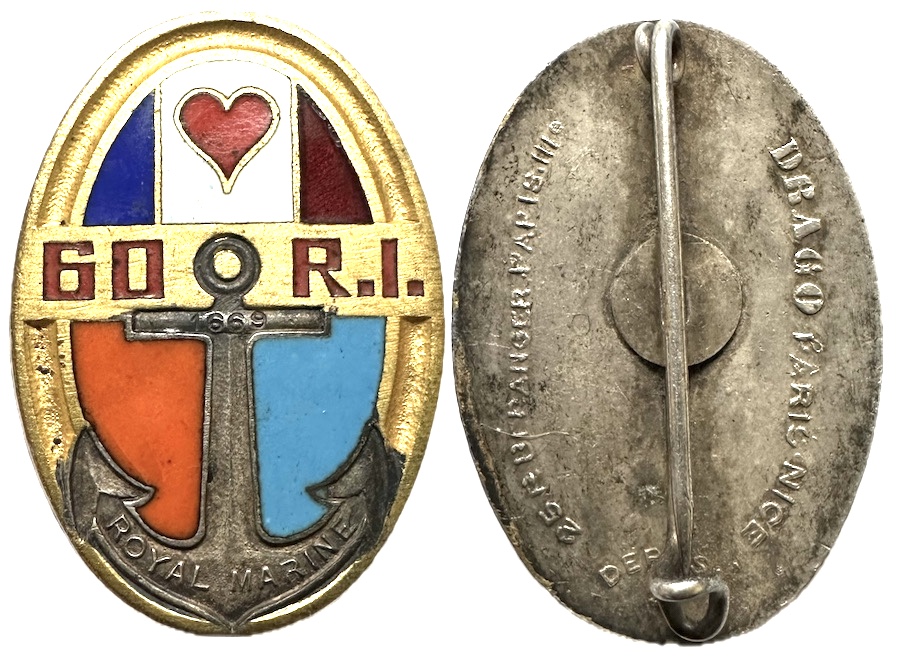 | 60° Régiment d’Infanterie, ovale, ROYAL MARINE, ancre argentée | ||||