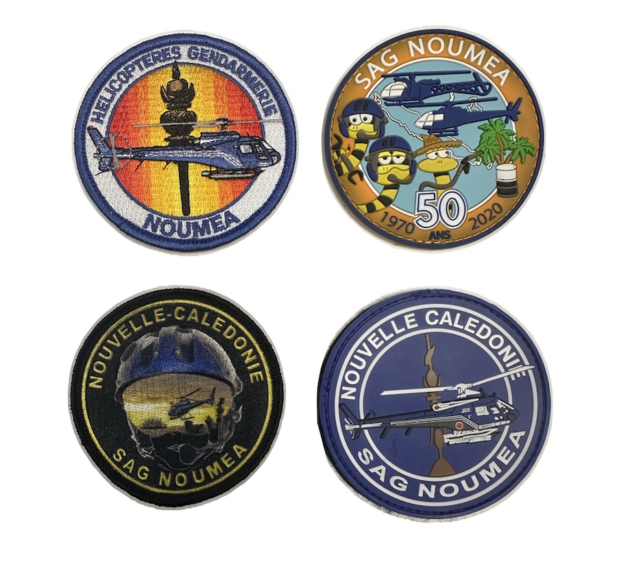 | Lot de 4 Tissus HELICOPTERES GENDARMERIE NOUMEA divers | ||||