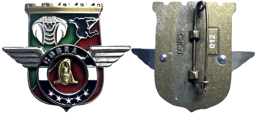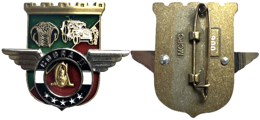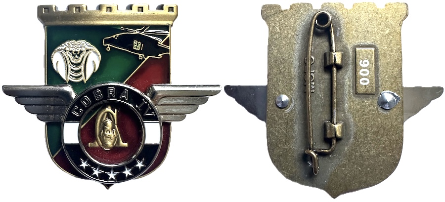 | aigle sur écu bleu à une carte blanche derrick et pipe-line dorés PELOTON AVION R.R. en pointe | ||||