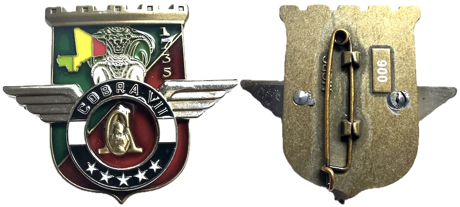 | Groupe de Transmissions Régionales Air, roue dentée fond bleu à T rouge sur croix du sud Agadès argentée brochant sur une aile de même | ||||