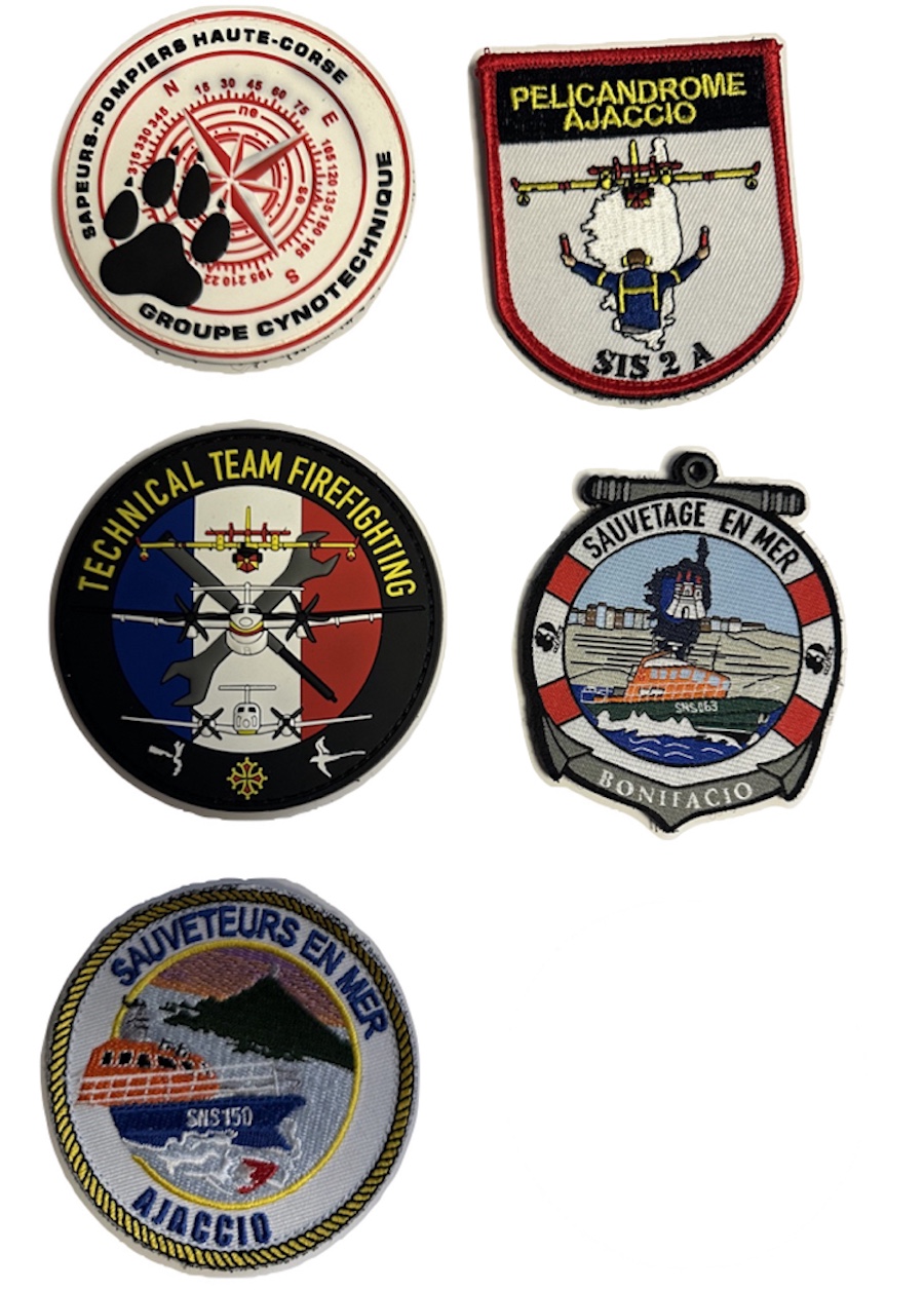 | écu bleu Corse verte 3 avions rouges tour de contrôle et tête de corse argentées | ||||