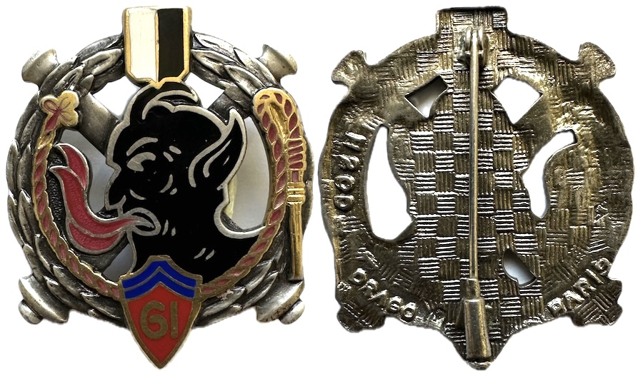 | 61° Rgt d’Artillerie, dos guilloché embouti, en ARGENT | ||||