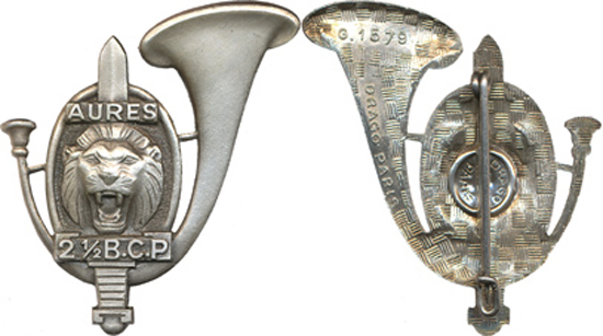 | 2° Demi Brigade de Chasseurs, AURES, dos guilloché embouti | ||||