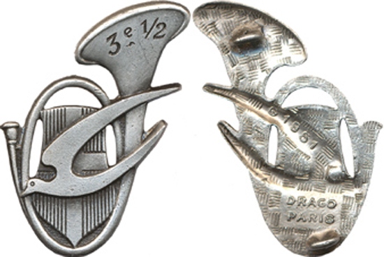 | 3° Demi Brigade de Chasseurs, gravé 3° 1/2, dos guilloché embouti | ||||