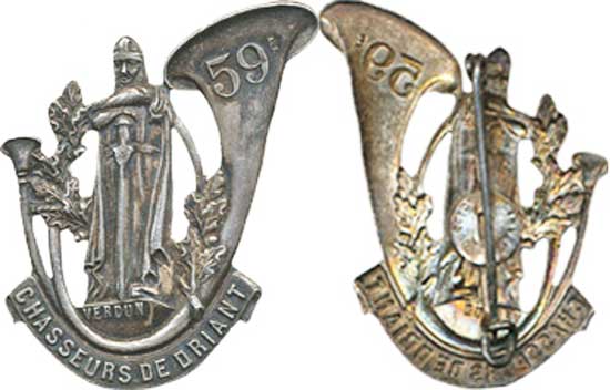 | 59° B.C.P, Chasseurs de Driant, Amicale, fond ajouré, pastille Mourgeon | ||||