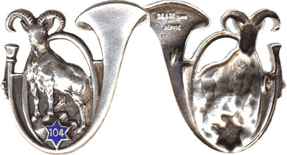 | 104° Bataillon de Chasseurs Portés, émail clair, embouti, 2 anneaux | ||||