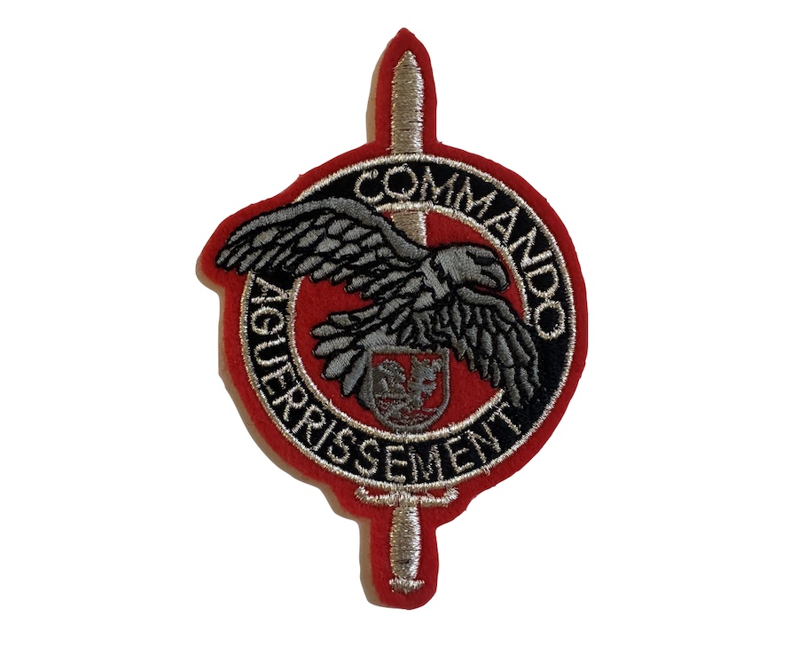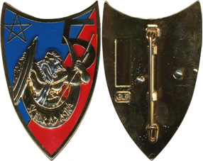 | rondache rouge fond bleu tête d’asiatique brochant sur un avion argenté chiffre 3 rouge sigle 23° GAOA | ||||