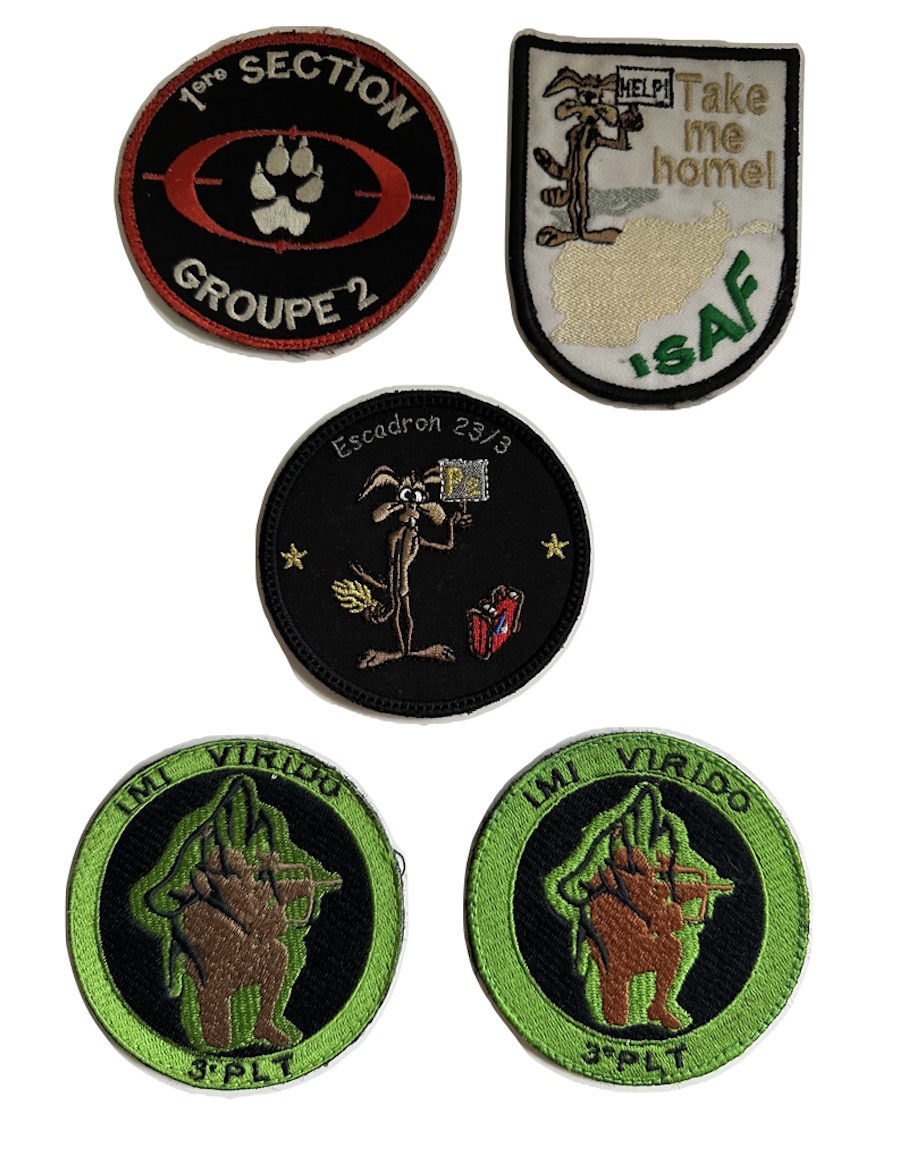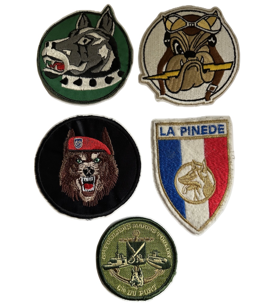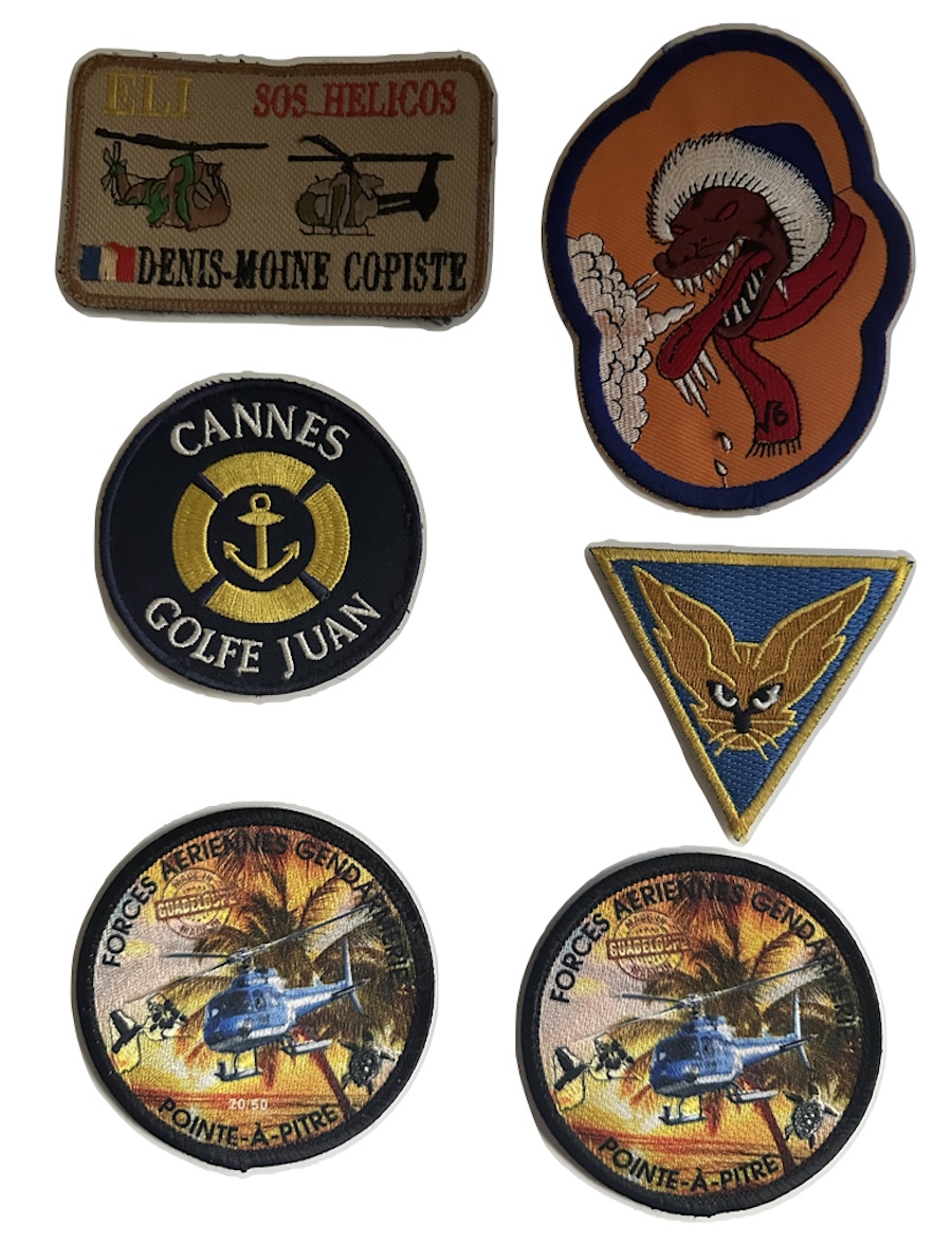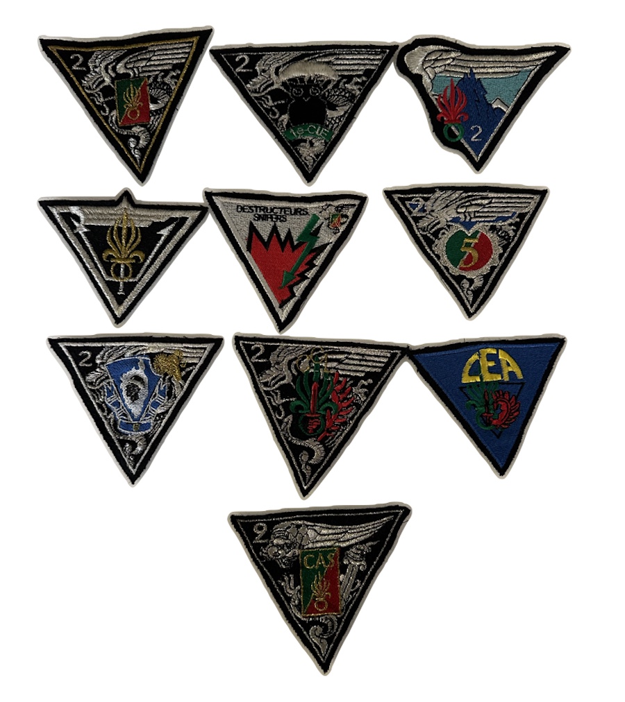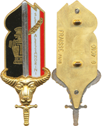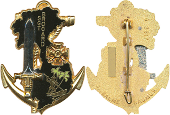| ancre brochée d’une croix du sud Agadès bleue chargée d’une gazelle, sigle 13 CSPA, 2 boléros gravés DRAGO PARIS | ||||