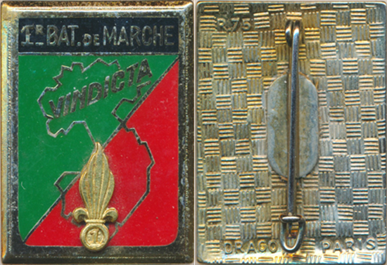| triangle taillé vert et rouge à une tête de bubale. sigle 2° REP, 2° CIE. ATTENTION... pouvant disposer de plusieurs exemplaires de cet insigne, le numéro vu sur la photo ne sera peut être pas celui que vous allez recevoir, | ||||