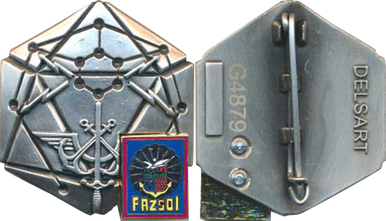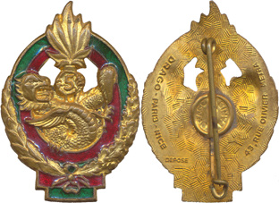 | Créé par décision ministérielle en date du 26/02/1946 (NR 1904 / EMA / 3.1) écu noir à un sphinx argenté devant une grille le tout posé sur 2 clés croisées. ATTENTION... pouvant disposer de plusieurs exemplaires de cet insigne, le numéro vu sur la pho | ||||