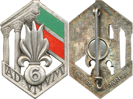 | 6° Régiment Etranger d’Infanterie, argenté, 1 boléro sans marque | ||||