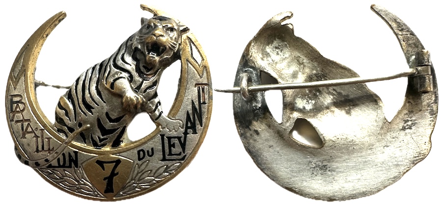 | 7° Bataillon du LEVANT, tigre argenté, petits manques d’émail | ||||