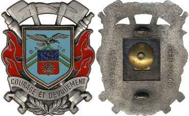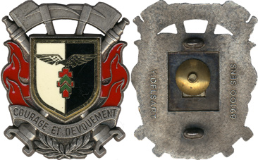 | écu bleu doré aigle noir sur croix rouge brochant parachute blanc au 14 sigle C A P. ATTENTION... pouvant disposer de plusieurs exemplaires de cet insigne, le numéro vu sur la photo ne sera peut être pas celui que vous allez recevoir | ||||