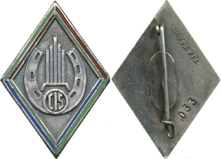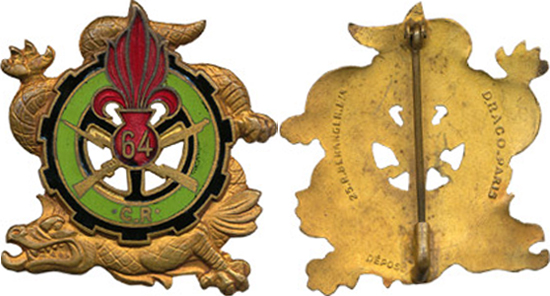 | losange à bordure verte, rouge, bleue et verte, broché d’un fer à cheval chargé d’une grenade stylisée. F.I.A Ed.Lyon en haut à droite. ATTENTION... pouvant disposer de plusieurs exemplaires de cet insigne, le numéro vu sur la photo ne sera peut être pas | ||||